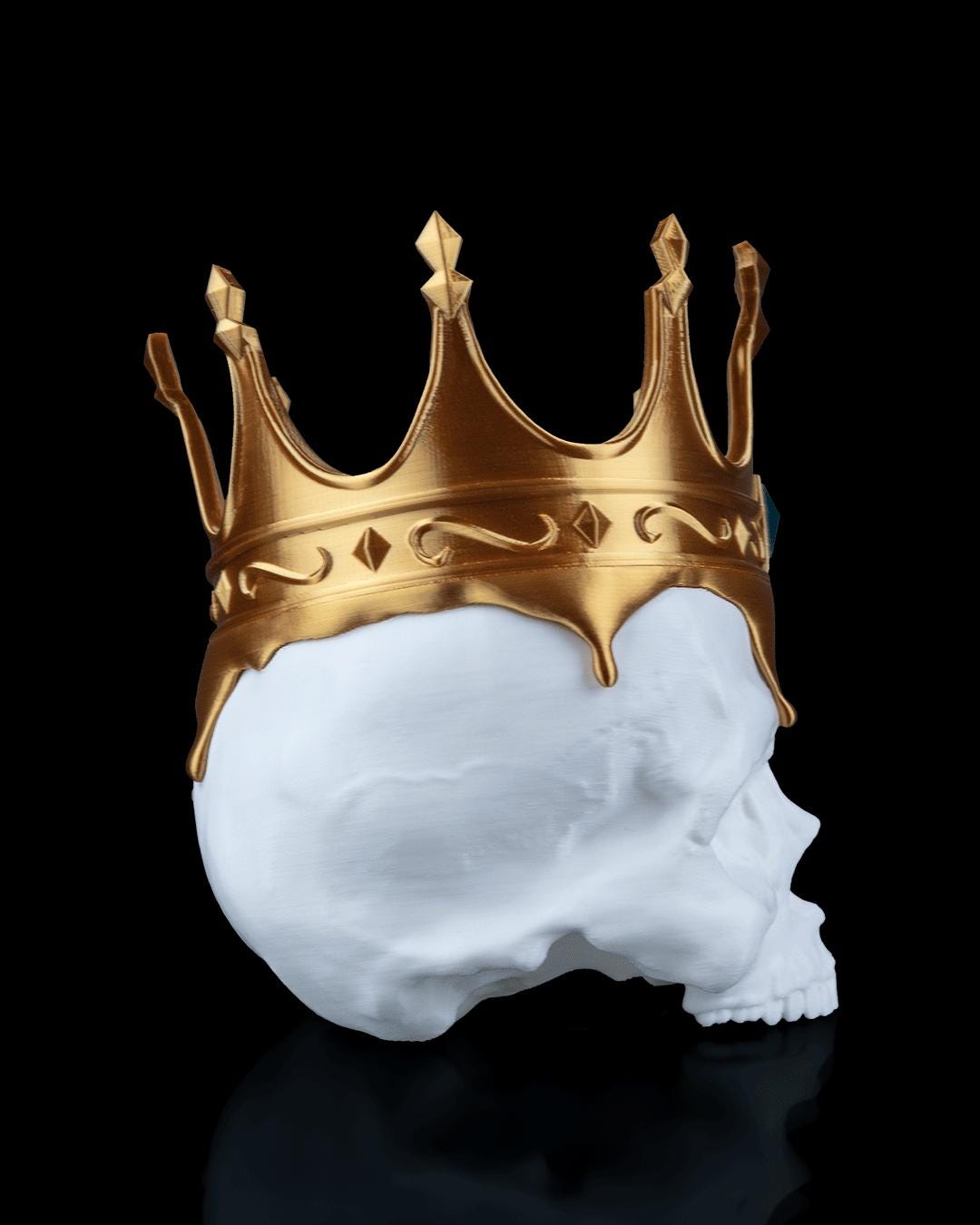 A haunting symbol of power lost. This crowned skull blends gothic grit with regal detail, capturing the story of a king who once ruled but now rests in legend. 3D printed in durable PLA, it’s a striking piece for collectors who love dark, dramatic art.