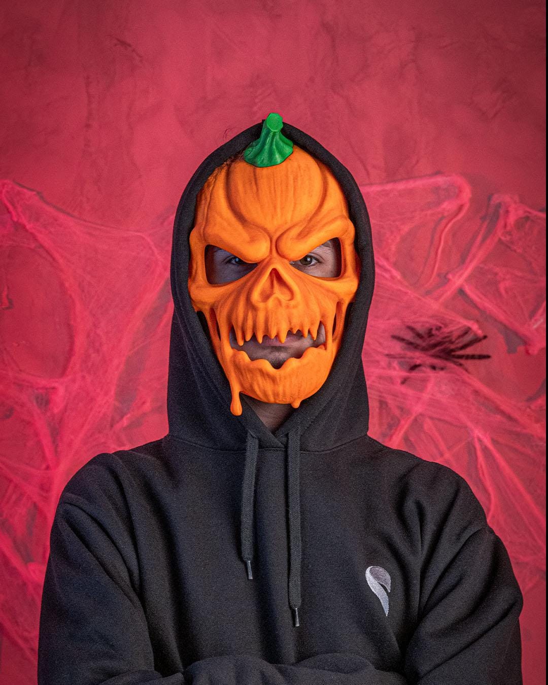 Turn heads (and send shivers) this Halloween with the Melted Pumpkin Skull Mask! 👻